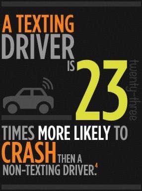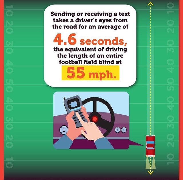 Texting Risk Texting takes drivers eyes away from road for average of 4.6 seconds, equivalent to length of football field.